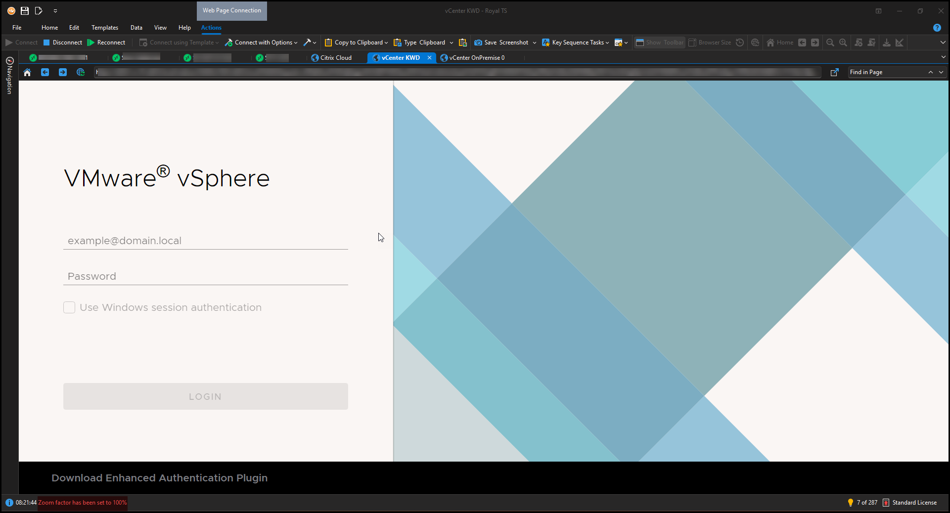 I think I just figured something out. There appears to be a mismatch between what Royal TS thinks is 100% and what is really 100% zoom. I noticied on this vshpere login page that zoomed in. So I attemtped to use CTRL+0 to reset and that didn’t seem to have any effect.